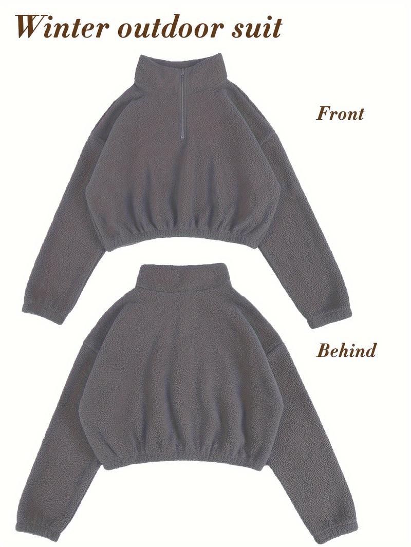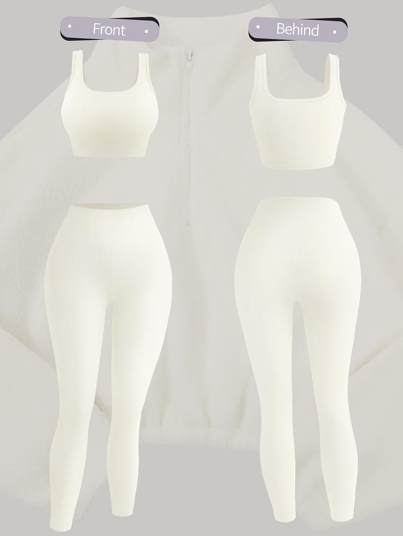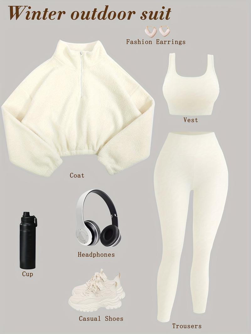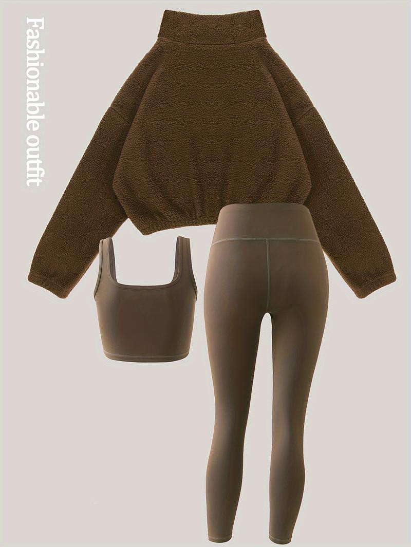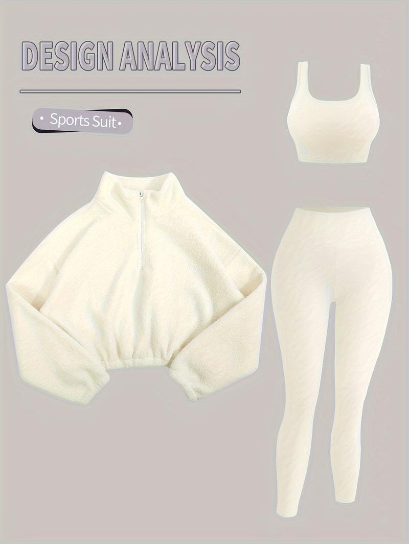 Amoyer 3-Piece Tracksuit Set for Women, Fleece-Lined Zip Jacket + Top + High-Waist Pants, Cozy Winter Activewear for Gym, Running, Travel