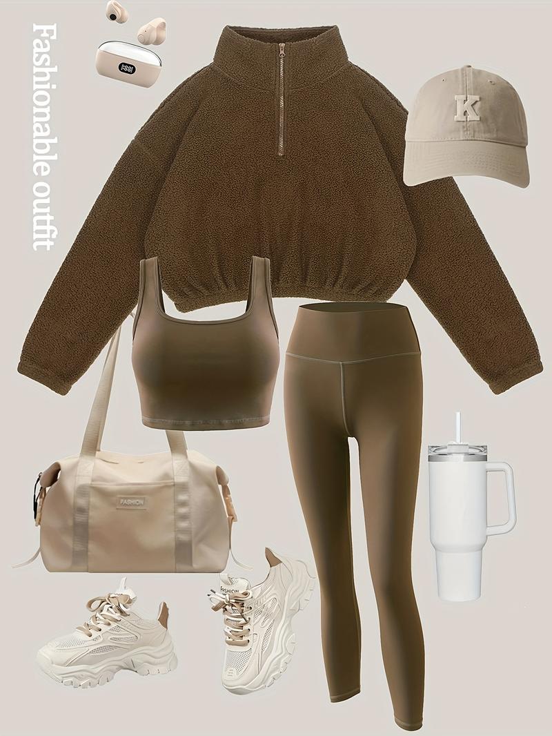 Three-piece Set: Includes yoga pants and a half zipper hoodie. Excludes accessories. 📦